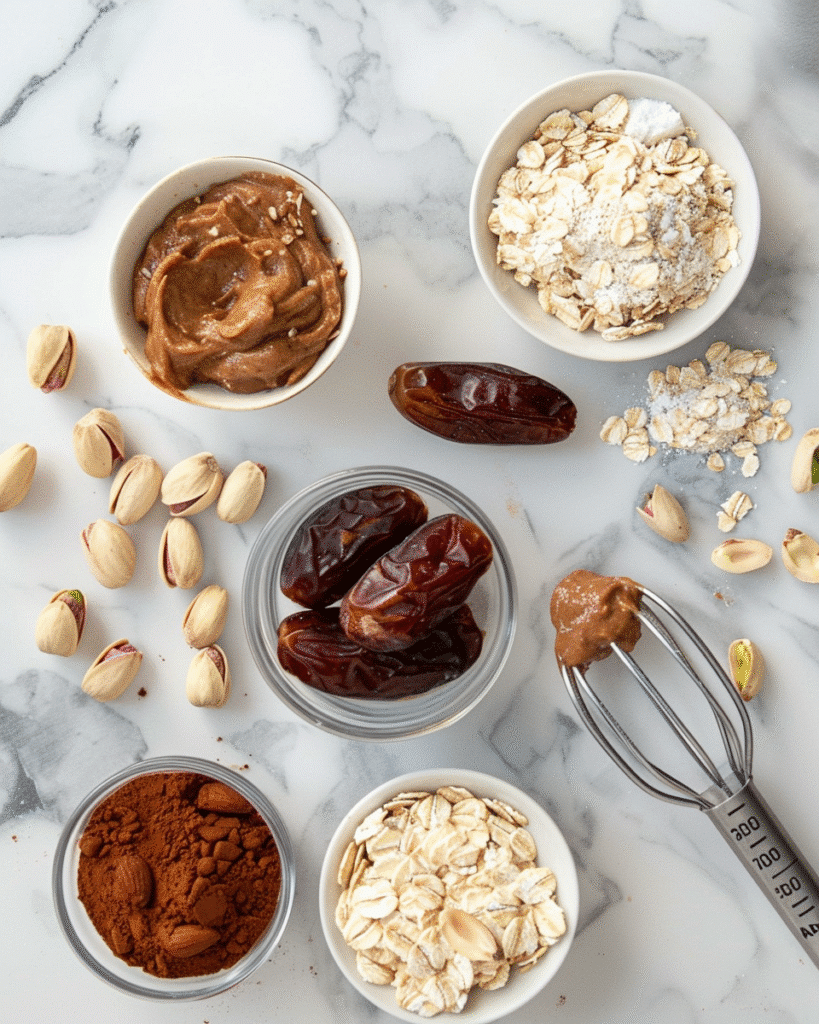 These ingredients provide a balanced combo of healthy fats, plant protein, fiber, and natural sugars. The dates act as the binder and sweetener, while the oats and pistachios offer sustained energy and crunch. A scoop of clean vegan protein powder adds lasting fuel—especially great post-workout or during busy afternoons.